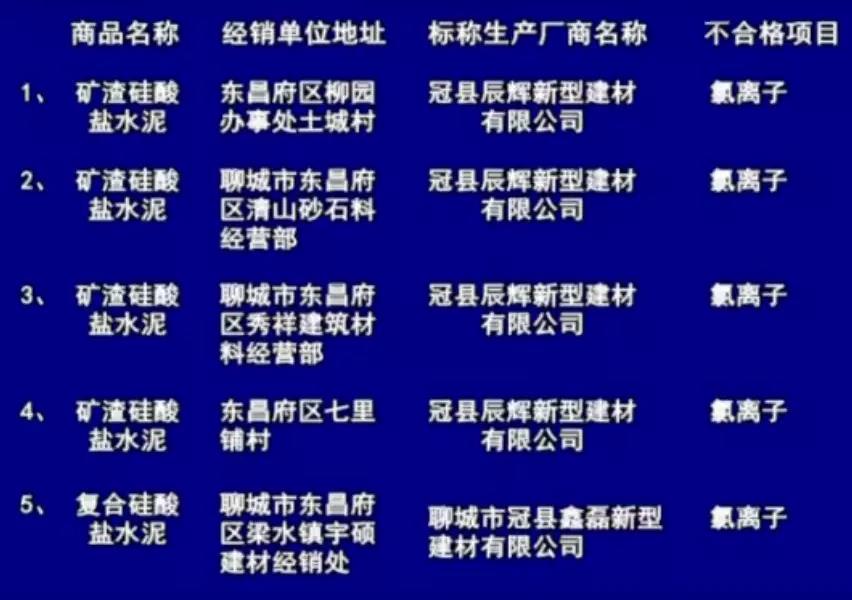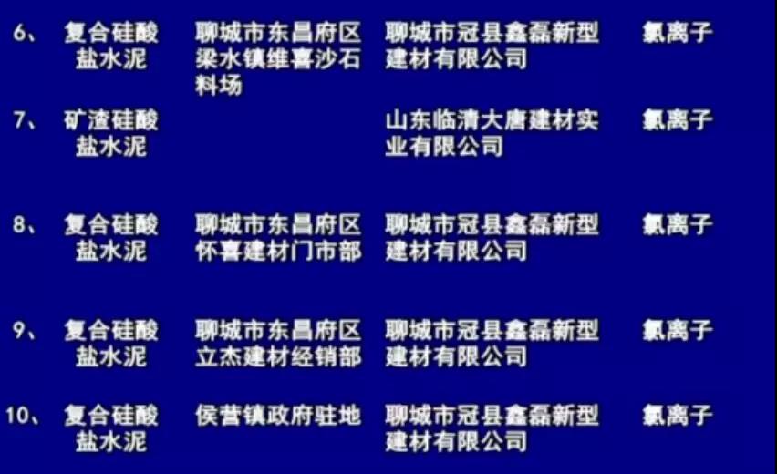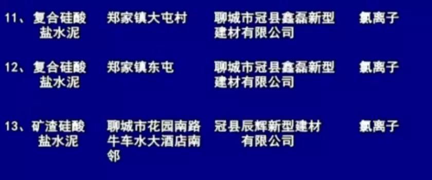 上述質量檢測的主要問題均是水泥中氯離子含量超標。相關行業人士表示,水泥中氯離子超標會產生電化學反應,使鋼筋表面的鐵不斷失去電子而溶于水從而被腐蝕,與此同時,還會在鋼筋表面形成紅鐵銹,導致體積膨脹使混凝土結構開裂。今年3月山東省市場監管局日前對全省130家企業生產的130批次水泥產品進行了監督抽檢,檢測發現,臨沂市陽都水泥等7家企業生產的商標為陽都等水泥產品不合格,不合格項目為氯離子、燒失量等。