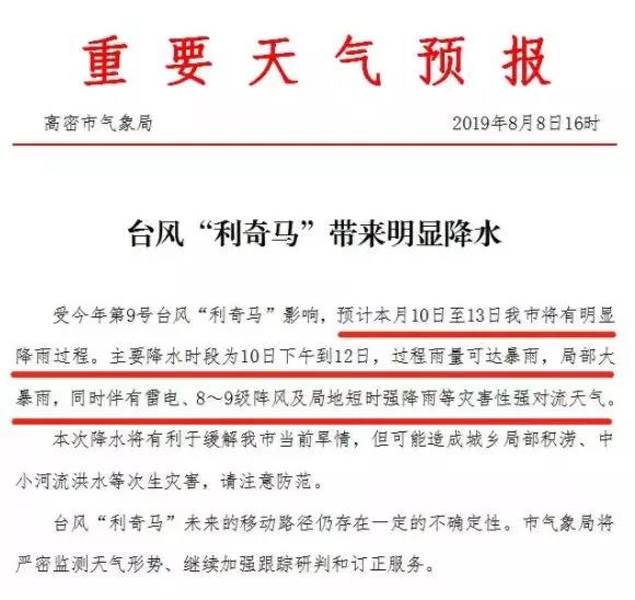 山東省氣象局發布第9號臺風“利奇馬”預報稱,預計臺風中心于11日下午至12日凌晨在山東半島至魯東南登陸。后期路徑存在一定的不確定性,穿過山東半島進入渤海的可能性較大。預計“利奇馬”外圍 云“系于10日下午開始影響山東省。