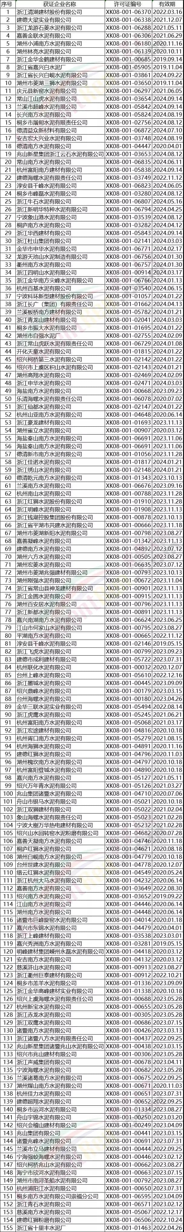 浙江省部分水泥企業名單