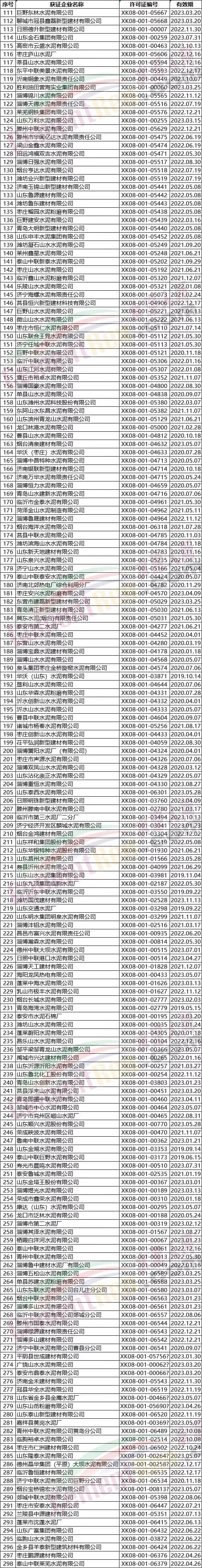 附:臺灣、福建、浙江、上海、江蘇、山東、河北、天津、遼寧水泥企業名單