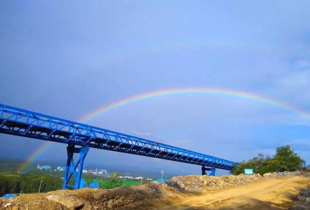 8月7日,七夕傍晚,鋼鐵鵲橋在叢林中穿梭,彩虹祥瑞相伴天際。這是天瑞南召水泥骨料線項目制作安裝完成的121-BC04,350米一體化廊道,雄壯威武。