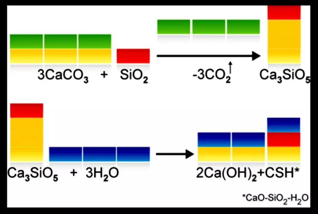 我們知道,所謂混凝土實際上就是一種人造巖石, 而大自然中的巖石并不都是經過高溫合成的。根據礦物學 P-T-t 成礦原理,大自然用了壓力、溫度、時間三個資源,而我們的水泥熟料生產只用了 T-t 兩個資源,如果我們也把 P 引進來會怎么樣呢? 世界上已經有人在做這方面的研究,而且已經取得了實驗室成果,正在向工業化推進。