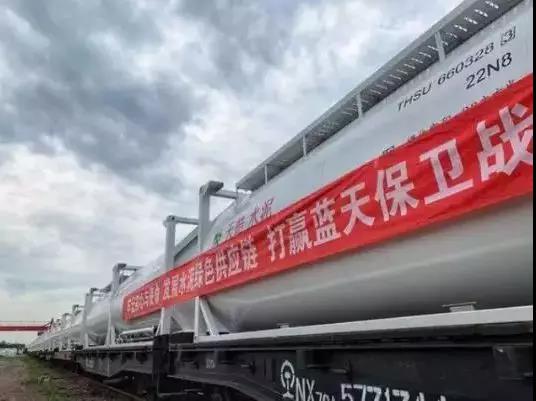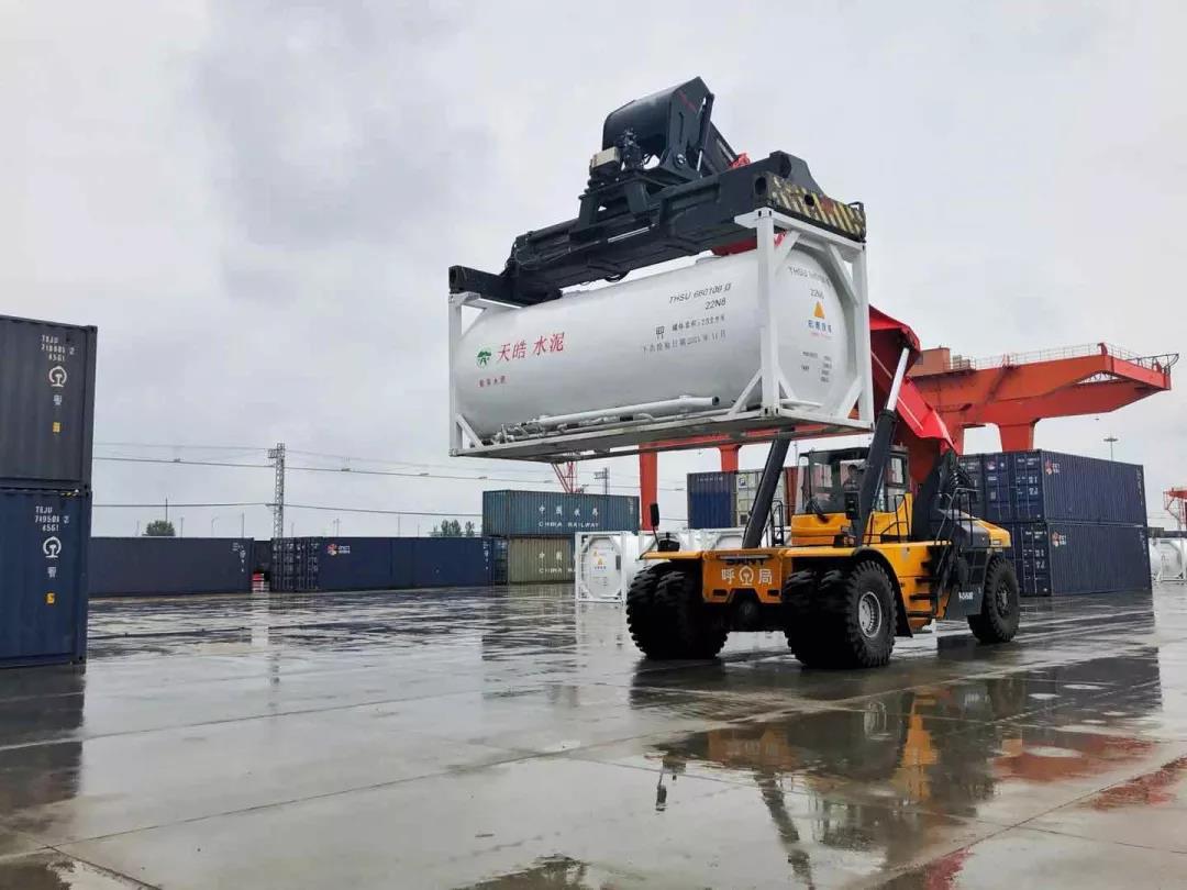 400個裝運散裝水泥的定制罐式集裝箱陸續到達廠區,未來每日將有100個罐式集裝箱發往北京、河南、河北等地