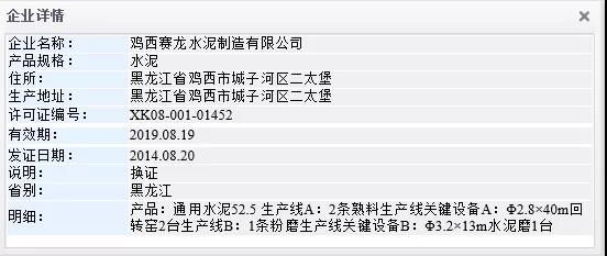 據業內人士介紹,用于出讓的兩條熟料生產線在2016年已關停拆除,近期黑龍江工信廳公布的生產線清單中也未提及這兩條熟料生產線。市場監管總局生產許可辦公室數據顯示生產地址位于黑龍江雞西市城子河區二太堡的兩條熟料生產線生產許可證發證日期為2014年8月20日,有效期至2019年8月19日。