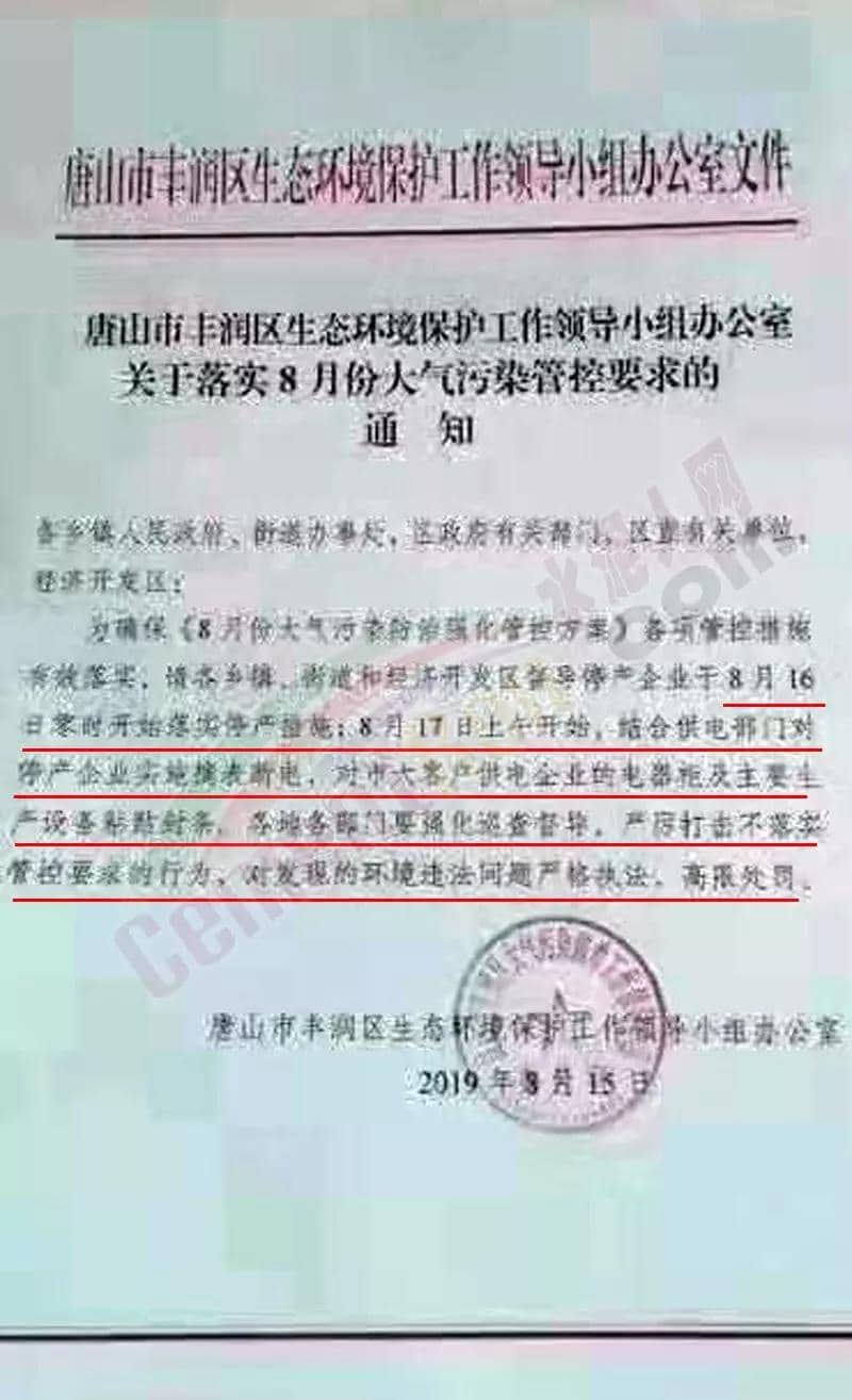 8月17日上午開始,結合供電部門對停產企業實施摘表斷電,對市大客戶供電企業的電器柜及主要生產設備粘貼封條,各地各部門要強化巡查督導,嚴厲打擊不落實管控要求的行為,對發現的環境違法問題嚴格執法,高限處罰。通知原文如下: