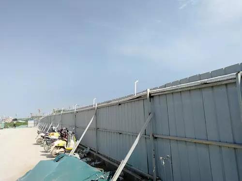 當(dāng)天上午,執(zhí)法人員首選來(lái)到鄭東新區(qū)金光路辦事處柳園口村的鄭東新區(qū)金光集體土地租賃房項(xiàng)目工地進(jìn)行檢查,現(xiàn)場(chǎng)發(fā)現(xiàn)該場(chǎng)區(qū)北側(cè)圍擋約200米無(wú)防溢基座,工地內(nèi)一臺(tái)非道路移動(dòng)機(jī)械不合格。