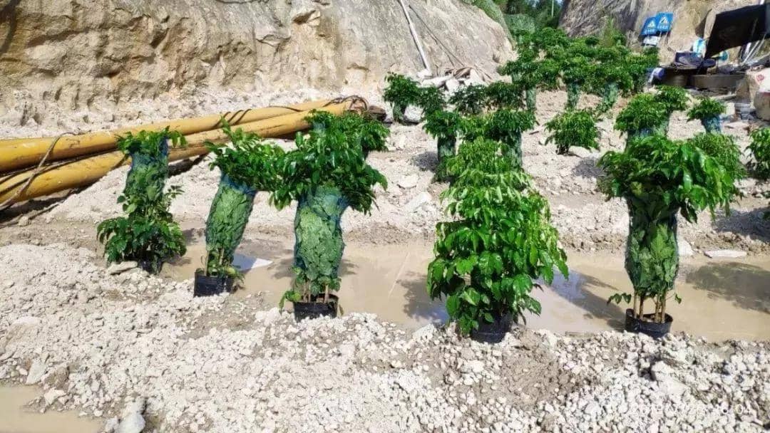 盆栽苗木直接擺放在廠區道路