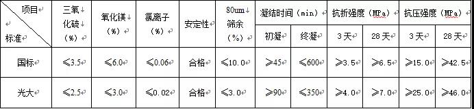 “凱城”牌P·C42.5水泥主要技術內控指標與國標對比