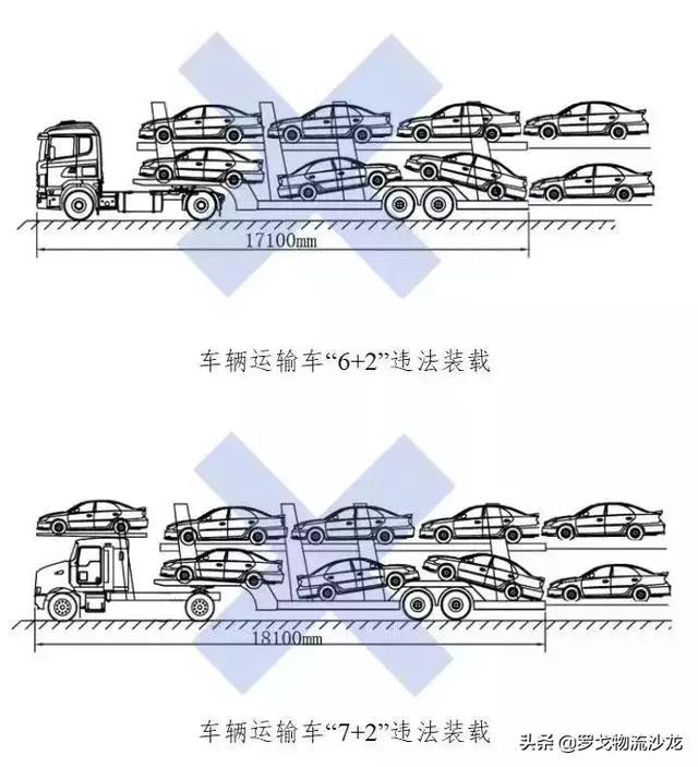 交通運輸部:嚴查超限超載,一年超限3次吊銷營運證車輛運輸車“6+2”“7+2”違法裝載示意圖