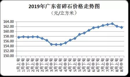 8月中旬,全省碎石平均購進(jìn)價(jià)為每立方米162元,環(huán)比微降0.27%。其中,粵北碎石均價(jià)為每立方米134元,環(huán)比微升0.14%;珠三角地區(qū)均價(jià)為每立方米179元,環(huán)比微降0.86%;粵東和粵西地區(qū)均價(jià)分別為每立方米189元和142元,環(huán)比均持平。