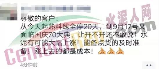 據(jù)河南新鄉(xiāng)某水泥企業(yè)負責人介紹,河南新鄉(xiāng)地區(qū)所有水泥企業(yè)自8月28日零起至9月20日起全部停產(chǎn)。除此之外,安陽地區(qū)雖然目前沒有接到相關(guān)停產(chǎn)文件,但是坊間有傳聞稱:9月初安陽地區(qū)也會停產(chǎn),如果停產(chǎn)20天,9月份基本上就生產(chǎn)不了了。