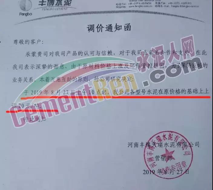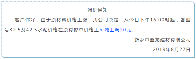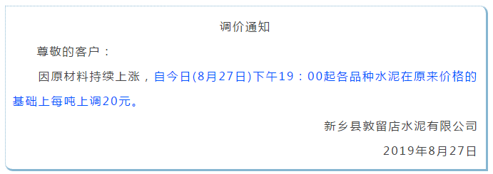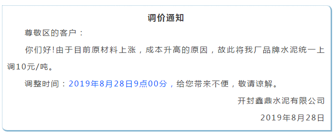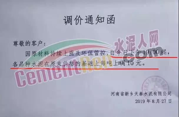 鄭州某水泥企業(yè)負責介紹,鄭州地區(qū)水泥企業(yè)將于9月初開始停產(chǎn),整個9月份都將處于停產(chǎn)狀態(tài),水泥價格也將會有所上漲,目前局部地區(qū)的水泥企業(yè)已經(jīng)開始漲價了。