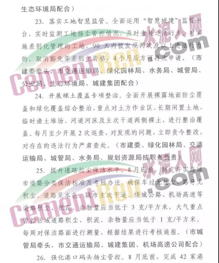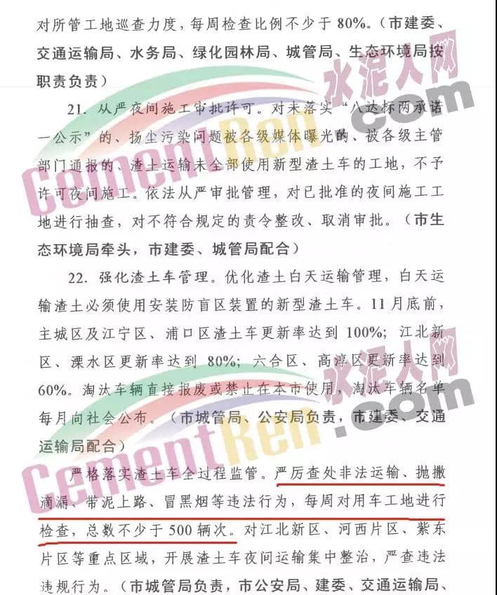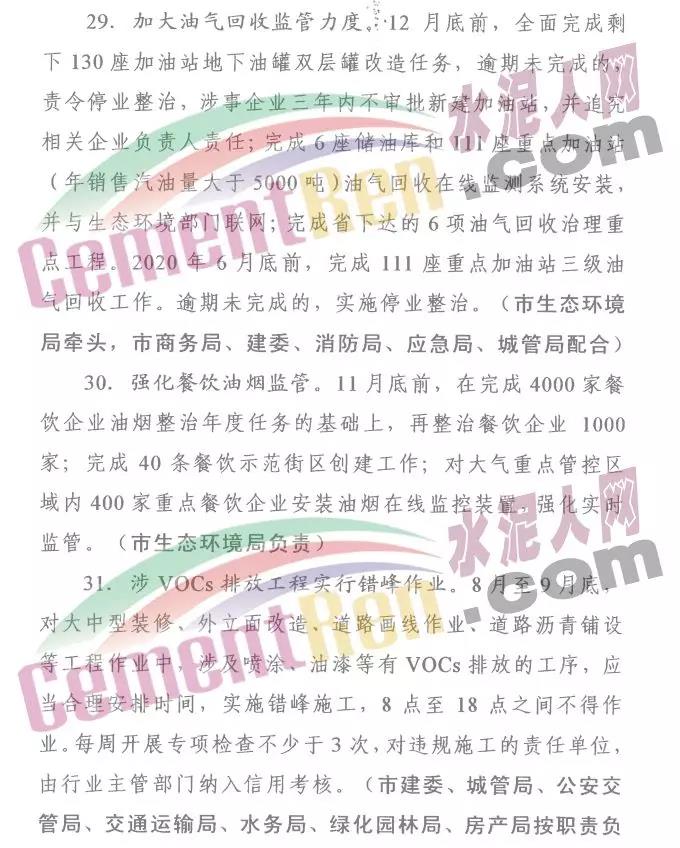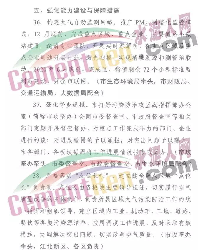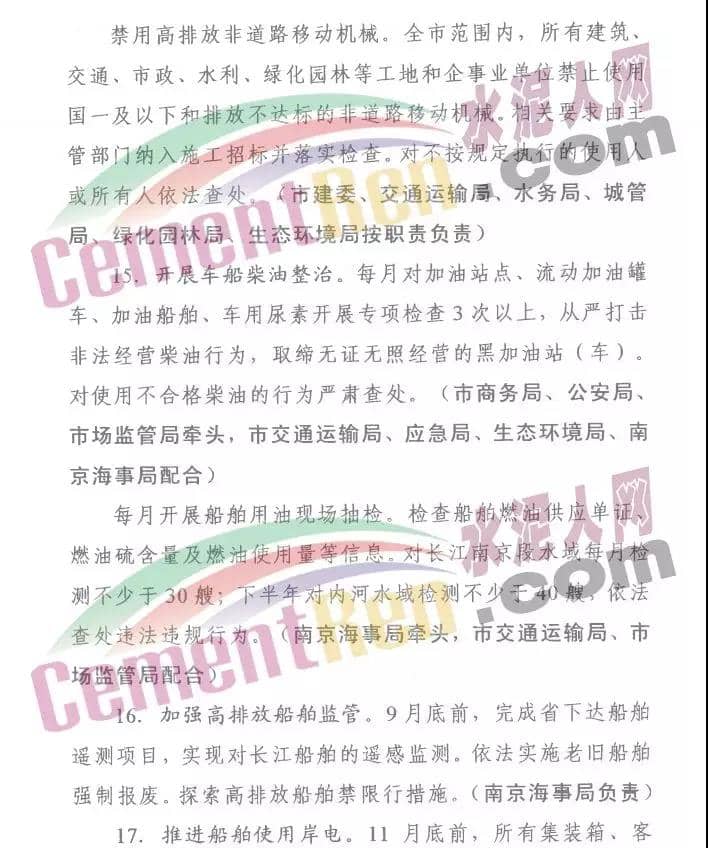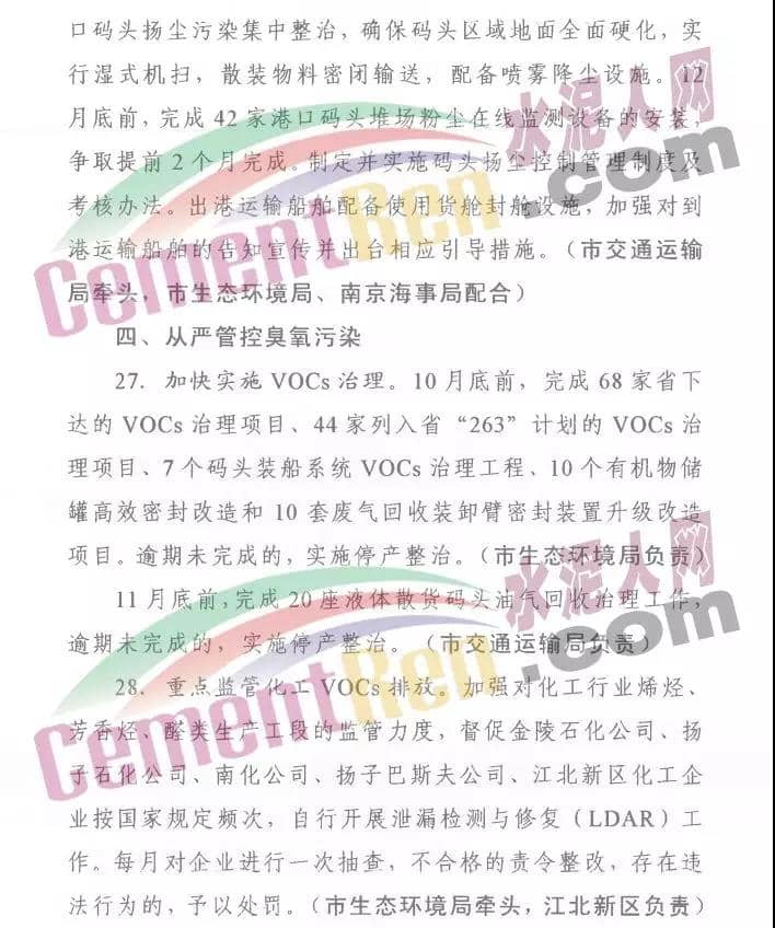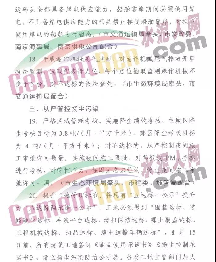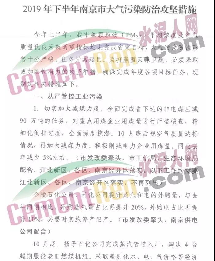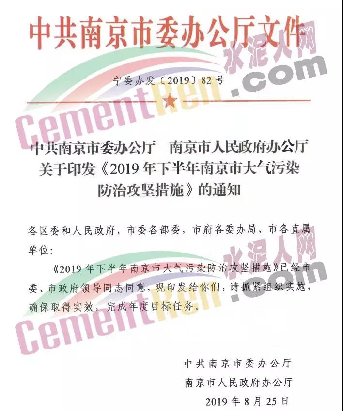 據水泥人網了解,近日,中共南京市委辦公廳 南京市人民政府公廳印發《2019年下半年南京市大氣污染防治攻堅措施》,針對各行各業大污染防治工作提出如下要求: