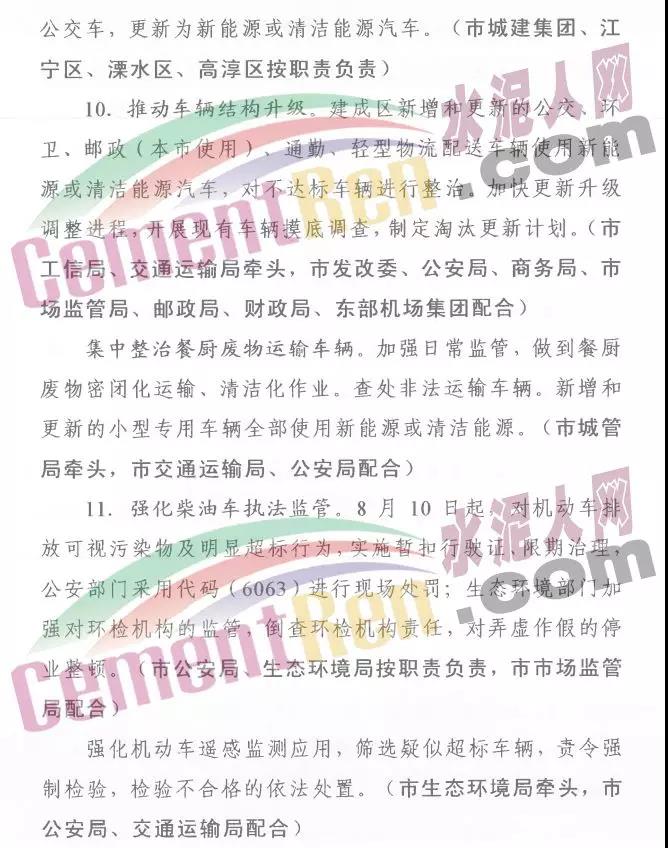 提高水泥、電力行業的排放要求,5家水泥企業氮氧化物排放濃度在達到省要求100毫克/立方米的基礎上,8月份起,通過加強污染治理設施運行管理,將氮氧化物排放濃度控制在80毫克/立方米以來。由南京市生態環境局負責。