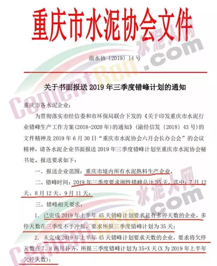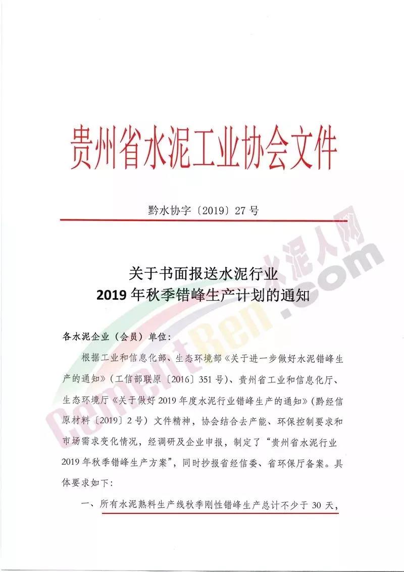 就在上個月初,由于貴州地區水泥價格一直低位運行,水泥出廠價格低至200元/噸以下,當地民間就傳出未來一個月貴州地區水泥價格將整體上漲100元/噸,價格調整到300元/噸,隨后不久貴州省水泥工業協會印發了“2019年秋季錯峰生產方案”,要求所有水泥熟料生產線秋季剛性錯峰生產總計不少于30天,原則上每月錯峰生產10天每窯。