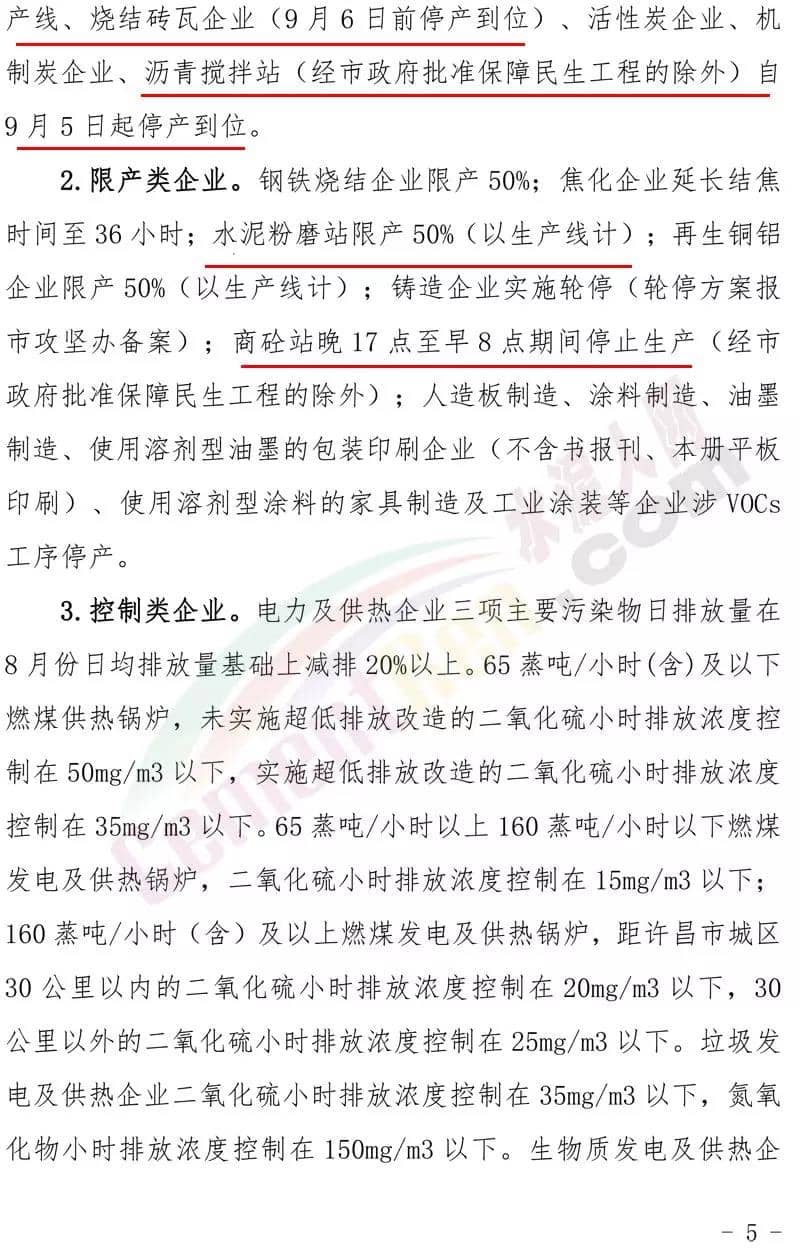 2、限產類企業中包括水泥粉磨站限產50%(以生產線計);商砼站晚17點至早8點期間停止生產。
