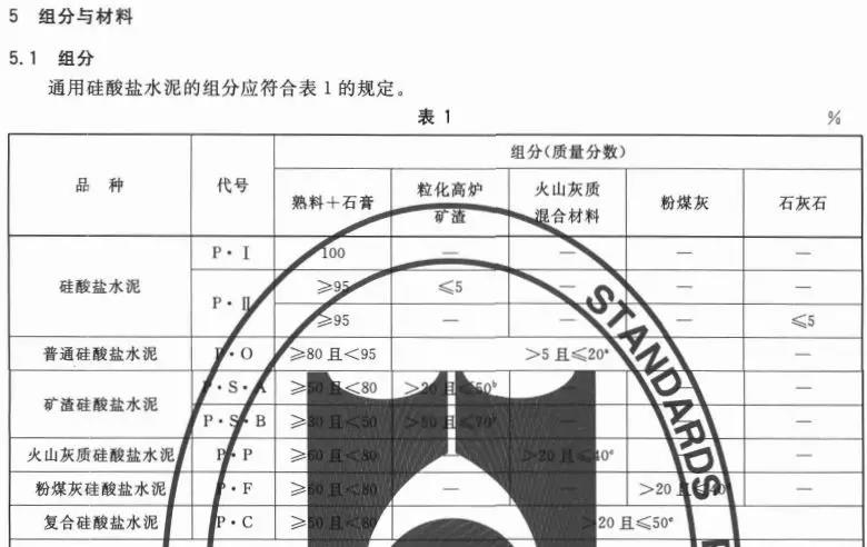 據水泥人網了解,通用硅酸鹽水泥GB175-2007國家標準中明確規定了通用硅酸鹽水泥的組分與材料,強度等級,技術要求試驗方法以及檢驗規則和包裝、標志 、運輸 與貯存等。國家標準按照混合材的品種和摻量將普通硅酸鹽水泥的分為硅酸鹽水泥、普通硅酸鹽水泥、礦渣硅酸鹽水泥、火山灰硅酸鹽水泥和復合硅酸鹽水泥。