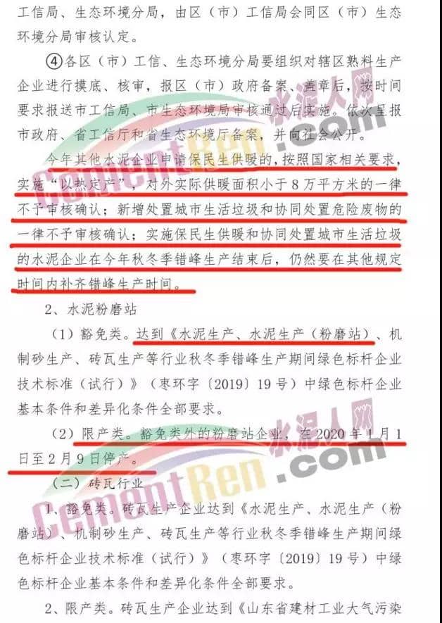 限產(chǎn)類。豁免類外的粉磨站企業(yè),在2020年1月1日至2月9日停產(chǎn)。全文如下: