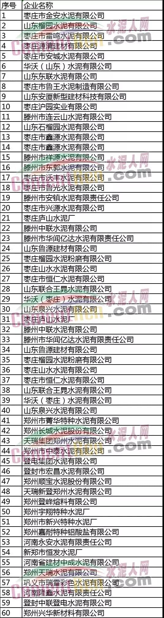 附部分鄭州、棗莊水泥企業(yè)名單