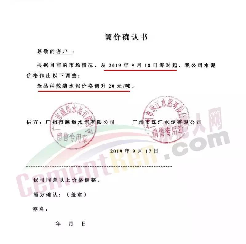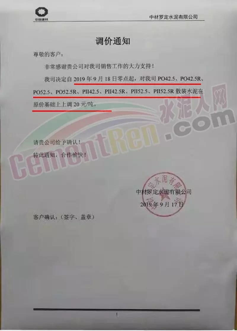華潤水泥投資有限公司通知 從9月18日0時起廣東地區(qū)(不含潮汕、揭尾)全品種散裝水泥價格上調(diào)20元/噸。