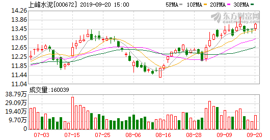 上峰水泥融資融券信息顯示,2019年9月19日融資凈買入301.43萬元;融資余額1.74億元,較前一日增加1.76%。