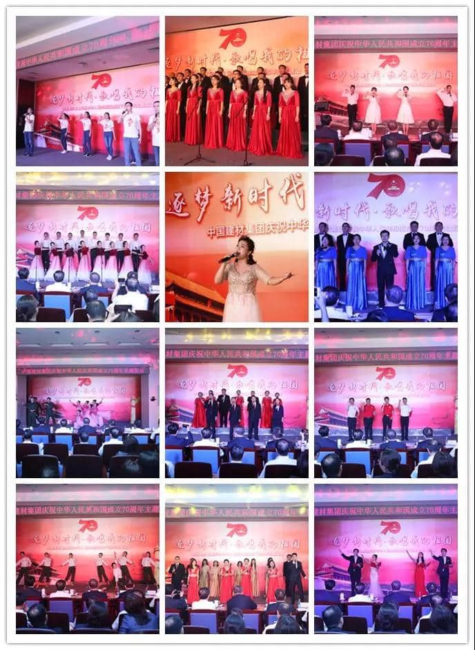 節目匯演本次活動以“逐夢新時代·歌唱我的祖國”為主題,由集團總部、中國建材股份、凱盛科技、資產公司、財務公司、中聯水泥、中國復材等7家單位表演了歌舞、合唱、詩朗誦等多種形式的節目。