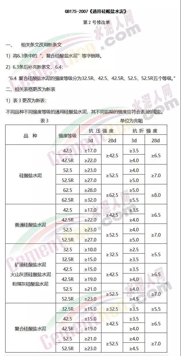 根據(jù)國家市場監(jiān)督管理總局、國家標準化管理委員會標準GB175-2007《硅酸鹽通用水泥》3號修改單規(guī)定,復合硅酸鹽水泥32.5R強度等級將于2019年10月1日起被取消,同時將復合硅酸鹽水泥的強度等級分為42.5、42.5R、52.5、52.5R四個等級。關于復合硅酸鹽水泥和普通水泥的區(qū)別,消費者還是疑惑重重。 復合水泥是混合水泥嗎?“復合”不可單純的理解為“混合”,不是雜亂無章的將材料拌合在一起,而是按照一定的配比要求酌量添加,分別混合。復合硅酸鹽水泥質量穩(wěn)定,凝結硬化快,早期強度高,和易性和抗?jié)B性等均優(yōu)于礦渣水泥,干縮性與普通硅酸鹽水泥一致。復合硅酸鹽水泥因“復合”二字讓部分用戶誤解,認為復合就是“混雜”。試驗研究顯示,其混凝土耐久性優(yōu)于其它品種水泥,適用于中小型構件、農(nóng)村民房、現(xiàn)澆結構。 “復合水泥”有什么樣的特殊性能呢? 復合水泥的一般物理性能(如細度、凝結時間、強度等)同普通水泥接近,其國家標準中規(guī)定的各種品質指標幾乎與普通水泥完全一致,主要差別在于復合水泥中混合材摻量較大。復合水泥的復合特性與復摻混合材料的品種、數(shù)量有關。就混合材料的品種而言,每一種可用混合材都有自身某一方面的特性,但往往在其它方面有不足之處。在這種情況下,有意識的摻加其它可以彌補彼此間性能不足的混合材料后,會產(chǎn)生復摻混合材的疊加效應,使生產(chǎn)出的復合水泥具有摻單一混合材料時所不能有的優(yōu)良效果。廣泛適用于民用建筑、工業(yè)工程、預制構件、保溫材料及裝飾裝修工程等。復合硅酸鹽水泥P·C42.5R與普通硅酸鹽水泥P·O42.5R的區(qū)別?兩者物理性能(如細度、凝結時間、強度等)接近主要區(qū)別在于P·C42.5R混合材摻量較大,水泥水化熱低,在體積混凝土施工中不易開裂。由于混合材性質、摻量的不同,通用硅酸鹽水泥會呈現(xiàn)一定的性能差異,并具有明顯的性能優(yōu)點和缺陷。復合硅酸鹽水泥除了具有礦渣硅酸鹽水泥、火山灰硅酸鹽水泥、粉煤灰硅酸鹽水泥等單一品種混合材水泥所具有的水化熱低、耐蝕性好、韌性好的優(yōu)點外,還能通過混合材料的復摻優(yōu)化水泥的性能,如改善保水性、降低需水性、減少干燥收縮、適宜的早期和后期強度發(fā)展。復合硅酸鹽水泥可用于無特殊要求的一般結構工程,適用于地下、水中、大體積等混凝土工程,特別是有環(huán)境水侵蝕的工程,但不宜用于需要早強和受凍融循環(huán)、干濕交替的工程中。