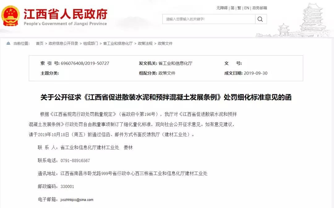 二、《江西省促進散裝水泥和預拌混凝土發展條例》第二十條 違反本條例規定,工程建設項目應當使用散裝水泥、預拌混凝土而未使用的,由散裝水泥和預拌混凝土管理機構責令限期改正,并可對建設單位按每立方米混凝土處以100元罰款,或者按每噸袋裝水泥處以300元罰款。但責任屬于施工單位的,對施工單位進行處罰。