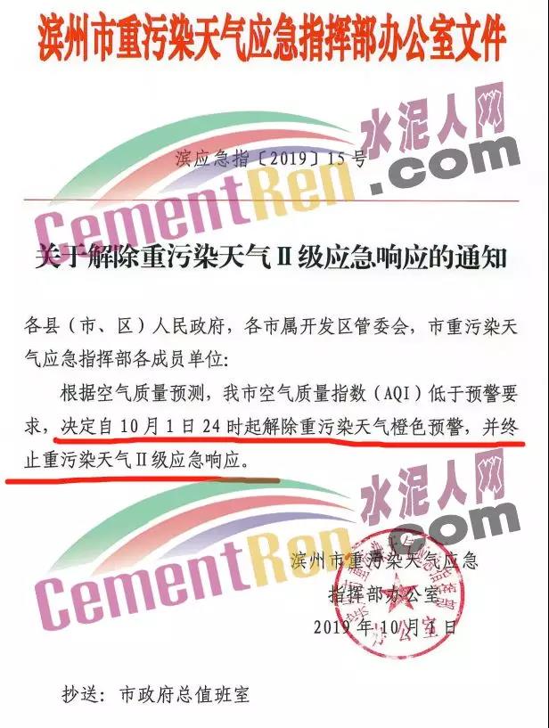同日,濱州市重污染天氣應急指揮部辦公室發布《關于解除重污染天氣II級應急響應的通知》稱,根據空氣質量預測,濱州市空氣質量指數低于預警要求,決定自10月1日24日時起解除重污染天氣橙色預警,并終止重污染天氣II級應急響應。