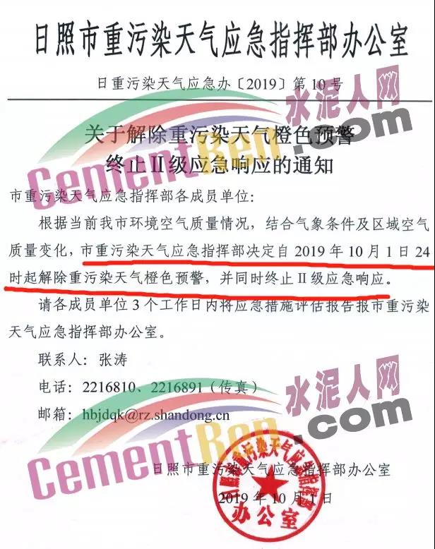 日照市重污染天氣應急指揮部發布《關于解除重污染天氣橙色預警終止II級應急響的通知》稱,根據當前日照市環境空氣質量情況,結合氣象條件及區域空氣質量變化,市重污染天氣應急指揮部決定自2019年10月1日24時起解除重污染天氣橙色預警,并同時終止II級應急響應。
