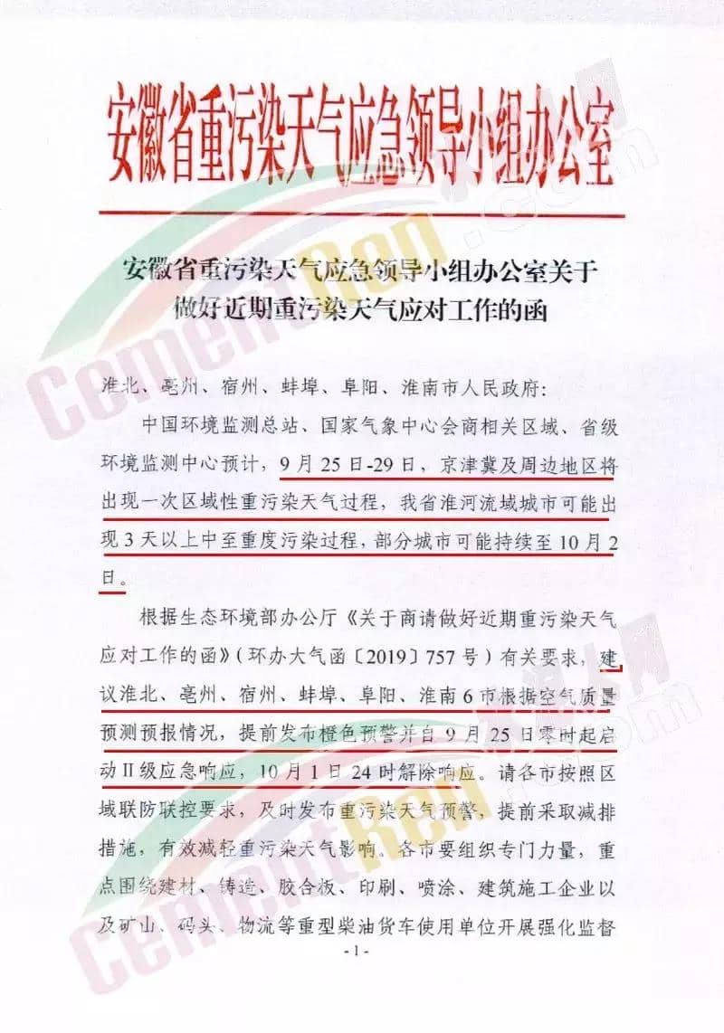除此之外,安徽省重污染天氣應急領導小組辦公室關于做好近期重污染天氣應對工作的函也明確指出,淮北、亳州、宿州、蚌埠、阜陽、淮南區域根據質量預測預報情況,自10月1日24時起解除II級應急響應。