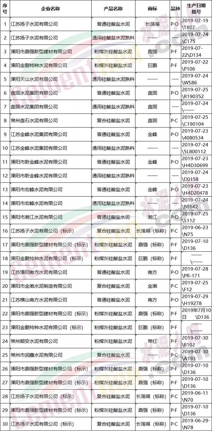 日前,常州市市場監督管理局發布《2019年度常州市水泥產品質量市級監督抽查結果的通報》稱根據《中華人民共和國產品質量法》《中華人民共和國政府信息公開條例》和《產品質量監督抽查管理辦法》等規定,常州市市場監督管理局委托溧陽市市場綜合檢驗檢測中心,對常州市生產企業生產的水泥產品進行了質量監督抽查,共抽查產品30批次,合格30批次,合格率100%。