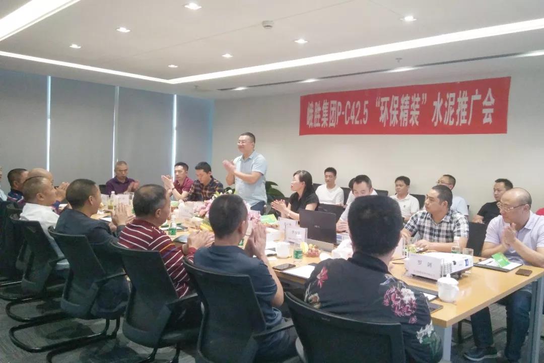 水泥人網消息:9月26日下午,四川峨勝水泥集團營銷中心副總經理駱玉剛在成都辦事處主持召開P·C42.5R環保精裝水泥發布會。公司副總經理兼營銷中心總經理許曉英出席會議,生產發展部副總經理蔡攀、成都片區袋裝水泥經銷商受邀參會。