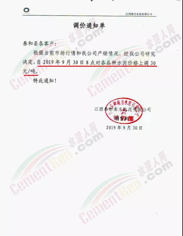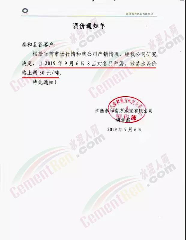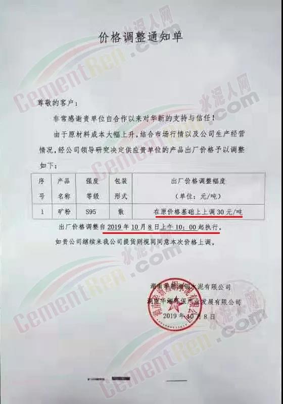 昨日通知上調(diào)價(jià)格的還有湖南華新湘鋼水泥有限公司。