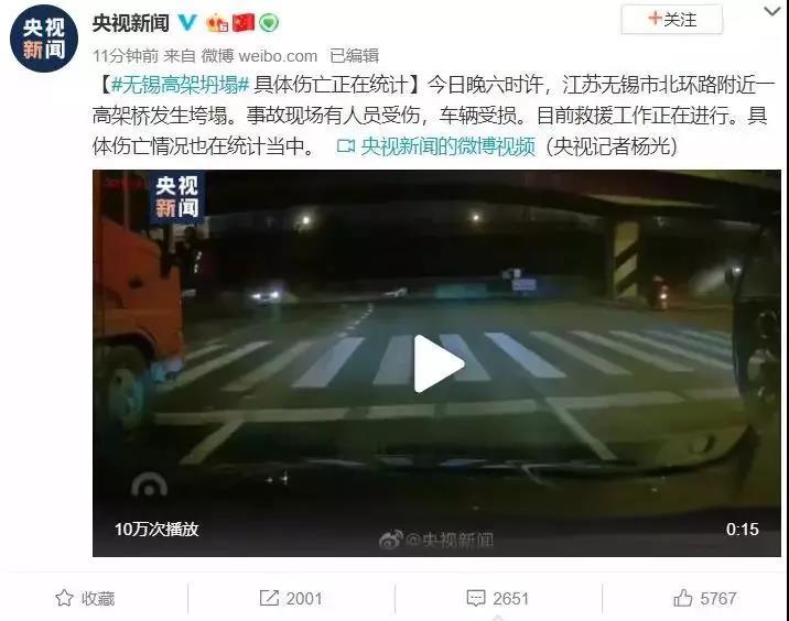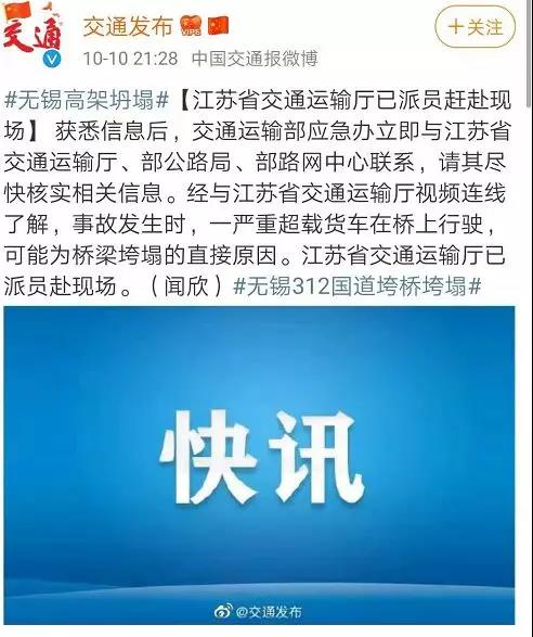 圖片來源:新浪微博@無錫交通廣播晚上8時許,央視新聞稱,目前,救援車輛已到現場。交警在距離事故現場不到2公里處的華莊岸大橋進行封路。提醒大家繞行!