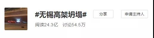 無錫橋梁側翻坍塌,專家有話說無錫高架橋垮塌事故發生不到24小時,微博熱搜#無錫高架坍塌#閱讀量超過24億,討論數量超過54萬。