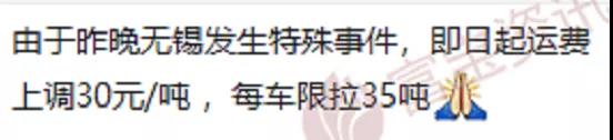同期物流企業通知運費上調30元/噸且每車限拉35噸。