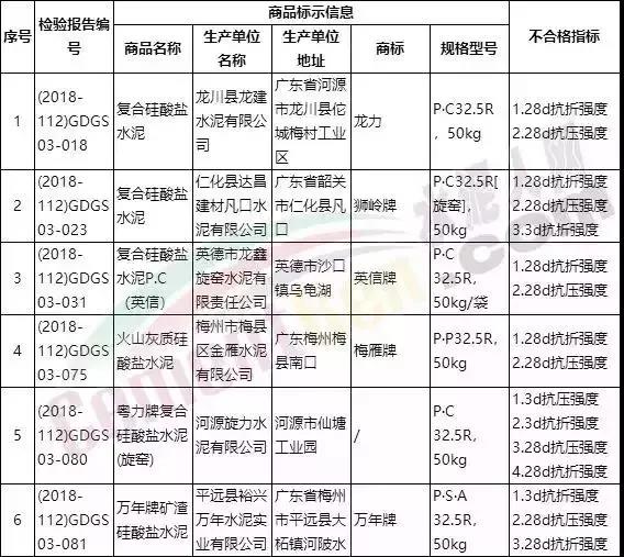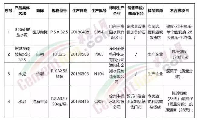 水泥抽檢不合格名單