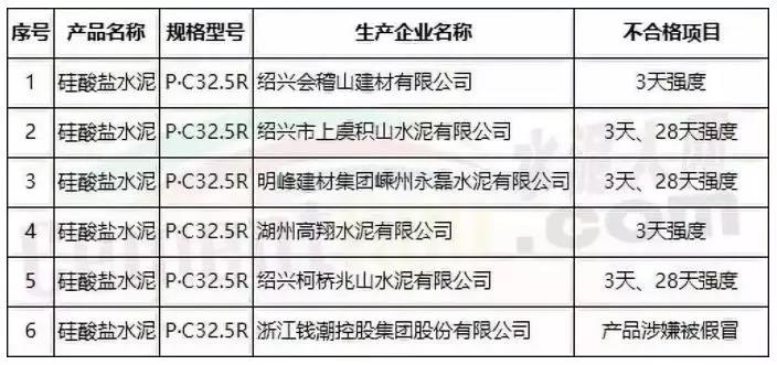 浙江省水泥產(chǎn)品監(jiān)督抽查不合格6批次