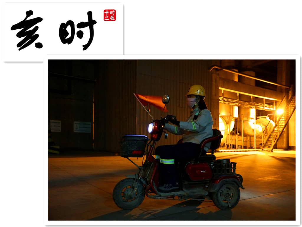 亥時(shí)(21:00—23:00)“戌時(shí)過(guò),亥時(shí)來(lái)”。控制室化驗(yàn)員定時(shí)取回樣品,風(fēng)雨無(wú)阻,為安全生產(chǎn)把牢質(zhì)量關(guān)口。