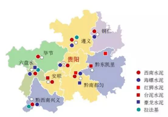 貴州地處西南區(qū)域同云南、貴州、湖南、廣西等接壤,從產(chǎn)能分布情況來看,貴州區(qū)域以西南水泥、海螺水泥為主導(dǎo),另有紅獅水泥、臺(tái)泥水泥、華潤水泥、豪龍水泥、拉法基等幾大國內(nèi)水泥集團(tuán)企業(yè)產(chǎn)能分布。