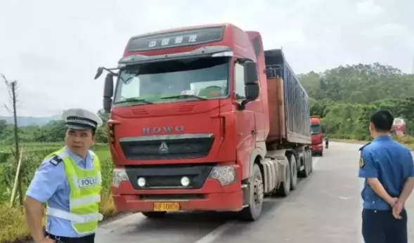 廣西柳州市公安局交警支隊鹿寨大隊查獲兩輛“百噸王”