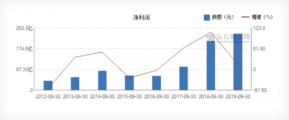 同期,該公司歸屬上市公司股東凈利潤(rùn)及增速情況如下圖: