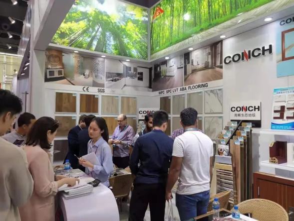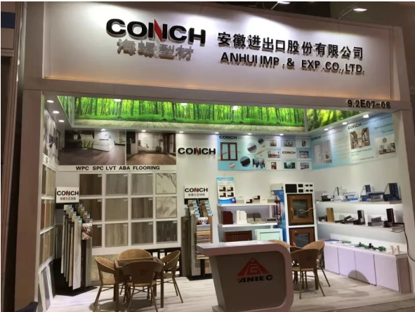 展會期間,海螺型材公司全屋定制產品海螺生態地板、系統門窗、生態門、節能附框、管材等華麗亮相。