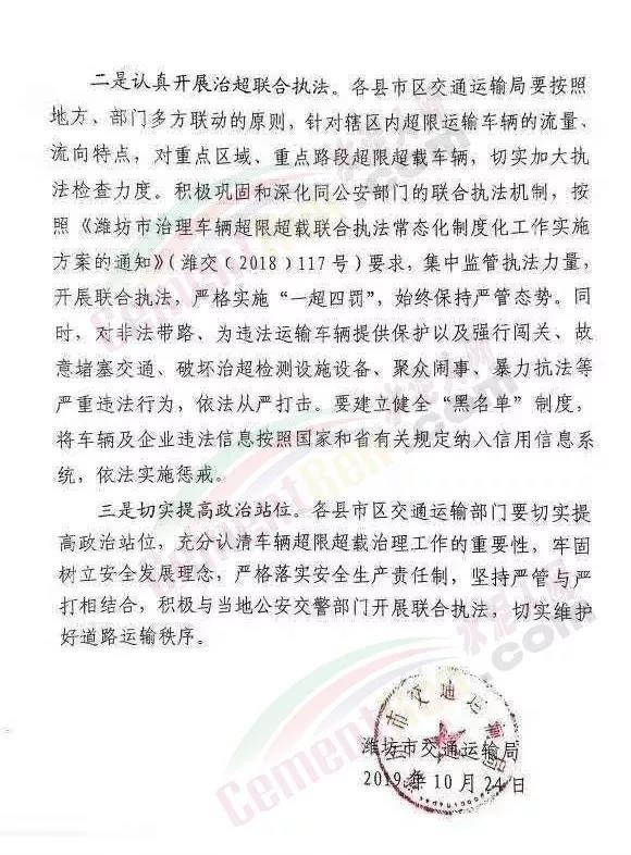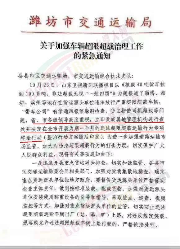 為進(jìn)一步加強(qiáng)道路運(yùn)輸市場監(jiān)管,加大對違法超限超載行為的打擊力度,切實(shí)保護(hù)廣大人民群眾利益,并將相關(guān)事項(xiàng)通知如下:一、迅速開展重點(diǎn)貨運(yùn)源頭排查,切實(shí)加強(qiáng)監(jiān)管各縣市區(qū)交通運(yùn)輸局要會同相關(guān)部門,加強(qiáng)對貨物集散地排查,確定重點(diǎn)貨運(yùn)源頭單位報地方政府,要督促貨運(yùn)源頭單位嚴(yán)格落實(shí)企業(yè)主體責(zé)任,做到按標(biāo)準(zhǔn)裝載、配載貨物。加強(qiáng)對貨運(yùn)源頭單位安裝使用稱重設(shè)備和引導(dǎo)和指導(dǎo)。采取駐點(diǎn)、巡查、視頻、監(jiān)控等方式,加強(qiáng)對重點(diǎn)貨運(yùn)源頭單位的監(jiān)管,切實(shí)防止違法超限超載運(yùn)輸車輛出廠(站、港、礦)上路。對違反規(guī)定裝載、縱容或允許違法超限超載車輛上路行駛的,嚴(yán)格依法處理。二、認(rèn)真開展治超聯(lián)合執(zhí)法各縣市區(qū)交通運(yùn)輸局要按照地方、部門多方聯(lián)動的原則,針對轄區(qū)內(nèi)超限運(yùn)輸車輛的流量,流向特別,對重點(diǎn)區(qū)域 、重點(diǎn)路段超限超載車輛,切實(shí)加大執(zhí)法檢查力度。積極鞏固和深化同公安部門的聯(lián)合執(zhí)法機(jī)制,按照《濰坊市治理車輛超限超載聯(lián)合執(zhí)法常態(tài)化制度化工作實(shí)施方案的通知》(濰交【2018】117號)要求,集中監(jiān)管執(zhí)法力量,開展聯(lián)合執(zhí)法,嚴(yán)格實(shí)施“一超四罰”,始終保持嚴(yán)管態(tài)勢。同時,對非法帶路,為違法運(yùn)輸車輛提供保護(hù)以及強(qiáng)行闖關(guān)、故意堵塞交通、破壞治超檢測設(shè)施設(shè)備、聚眾門事、暴力抗法等嚴(yán)重違法行為,依法從嚴(yán)打擊。要建立健全“黑名單”制度,將車輛及企業(yè)違法信息按照國家和省有關(guān)規(guī)定納入信用信息系統(tǒng),依法實(shí)施懲戒。三、切實(shí)提高政治站位各縣市區(qū)交通運(yùn)輸部門要切實(shí)提高政治站位,充分認(rèn)清車國內(nèi)超限超載治理工作的重要性,牢固樹立安全發(fā)展理念,嚴(yán)格落實(shí)安全生產(chǎn)責(zé)任制,堅(jiān)持嚴(yán)管與嚴(yán)打相結(jié)合 ,積極與當(dāng)?shù)毓步痪块T開展聯(lián)合執(zhí)法,切實(shí)維護(hù)好道路運(yùn)輸秩序。通知原文如下: