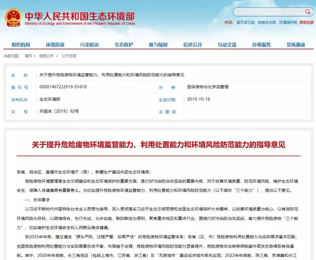 本月中旬,生態環境部在本月中旬發布發了《關于提升危險廢物環境監管能力、利用處置能力和環境風險防范能力的指導意見》中重點提到了規范水泥窯及工業爐窯協同處置。能有效發揮協同處置危險廢物功能的水泥窯,在重污染天氣預警期間,可根據實際處置能力減免相應減排措施。同時,修訂危險廢物貯存、焚燒以及水泥窯協同處置等污染控制標準。配合有關部門完善《資源綜合利用產品和勞務增值稅優惠目錄》,推動完善危險廢物利用稅收優惠政策和處置收費制度。
