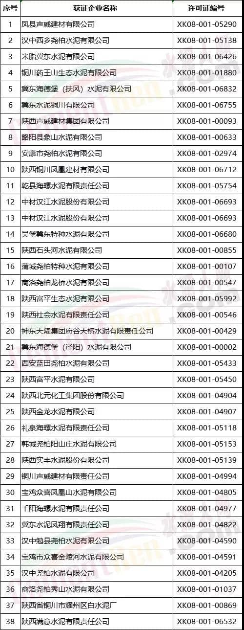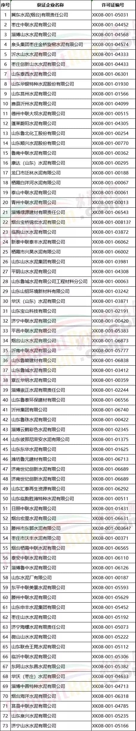 2018年已審核通過并真正實施的山東泉興水泥有限公司、華沃(棗莊)水泥有限公司、棗莊市沃豐水泥有限公司、山東聯合王晁水泥有限公司、滕州市東郭水泥有限公司