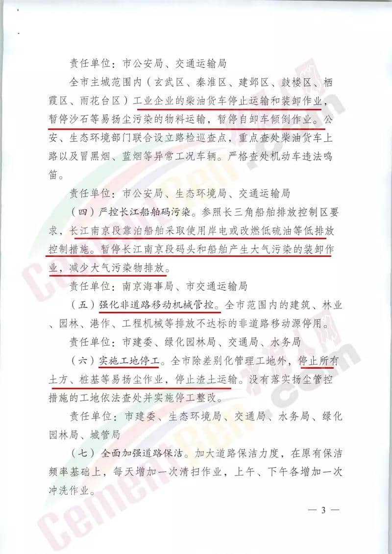 據(jù)水泥人網(wǎng)了解,日前南京市環(huán)境保護(hù)部門連發(fā)兩文要求列入全市秋冬應(yīng)急管控清單的1560家重點(diǎn)工業(yè)企業(yè)按照重污染天氣應(yīng)急預(yù)案橙色預(yù)警級(jí)別實(shí)施停限產(chǎn)。