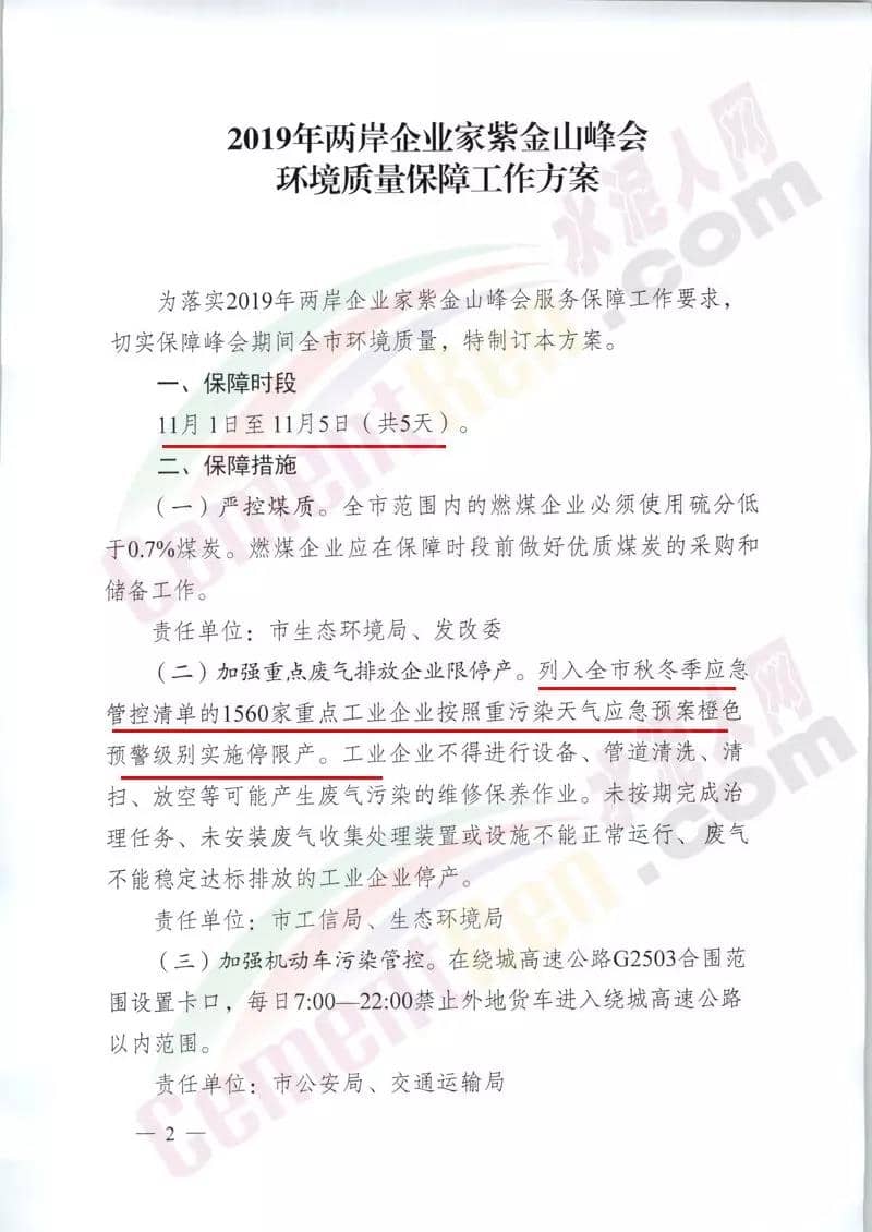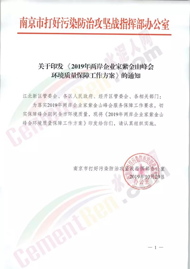 同期,南京市打好污染防治攻堅(jiān)戰(zhàn)指揮部辦公室發(fā)布《2019年兩岸企業(yè)家紫金山峰分環(huán)境質(zhì)量保障工作方案的通知》保障時(shí)段11月1日至11月5日(共5天)。通知原文如下: