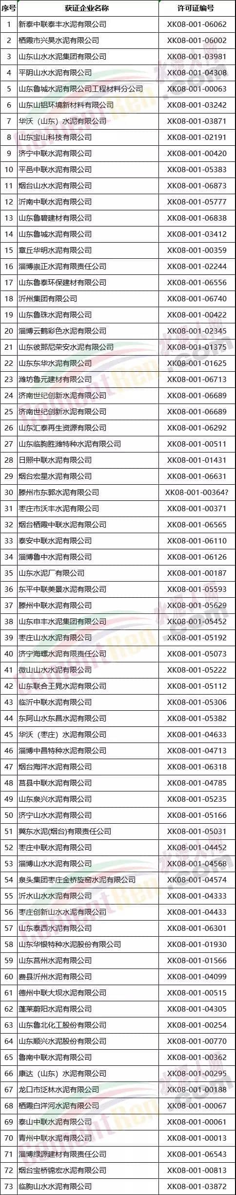 附:山東區(qū)域水泥熟料企業(yè)名單